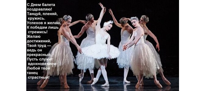Теги:с днем балета поздравляю танцуй, пленяй, кружись успехов я желаю, к победам лишь стремись желаю достижений, твой труд ведь он прекрасный пусть служит вдохновением любой твой танец страстный