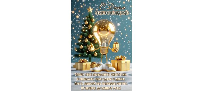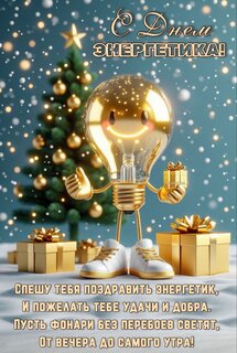 С днем энергетика! Спешу тебя поздравить энергетик, и пожелать тебе удачи и добра. Пусть фонари без перебоев светят, от вечера до самого утра!