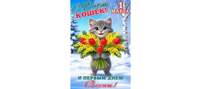Открытка "С ДНЕМ КОШЕК! И ПЕРВЫМ ДНЕМ ВЕСНЫ!"