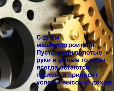 Открытка "С днем машиностроителя. Пусть ваши золотые руки и умные головы всегда остаются такими, и приносят..."