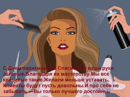 Открытка "С Днем парикмахера! Спасибо За ваши руки золотые. Благодаря их мастерству Мы все красивые такие. Жел"