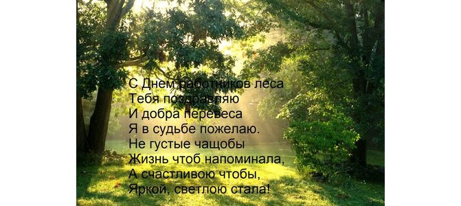 Открытка "С Днем работников леса Тебя поздравляю И добра перевеса Я в судьбе пожелаю. Не густые чащобы Жизнь ч"