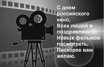 Открытка "С днем российского кино, всех людей я поздравляю. Новых фильмов посмотреть, поскорее вам желаю."