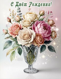 Теги:с днем рождения, цветы, розы, красивая картинка, ваза, пожелания на каждый день, девочке, девушке, женщине, бабаушке