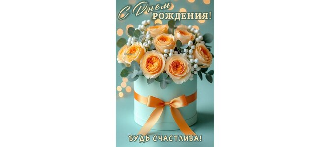 Открытка "С ДНЕМ РОЖДЕНИЯ! БУДЬ СЧАСТЛИВА!"