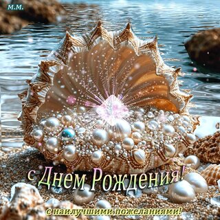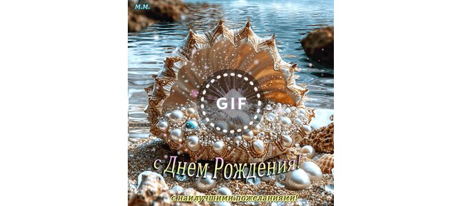 Теги:с днем рождения, женщину, девушку, маму, красивая открытка, анимация, ракушка и жемчуг, море, максимчук м г