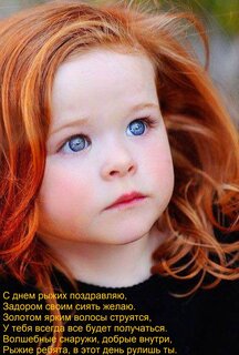 Открытка "С днем рыжих поздравляю, Задором своим сиять желаю. Золотом ярким волосы струятся, У тебя всегда все"