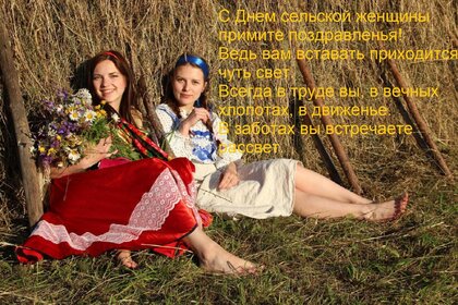 Открытка "С днем сельской женщины примите поздравленья! Ведь вам вставать приходится чуть свет. Всегда в труде"