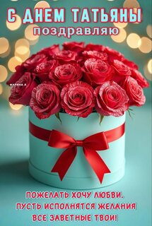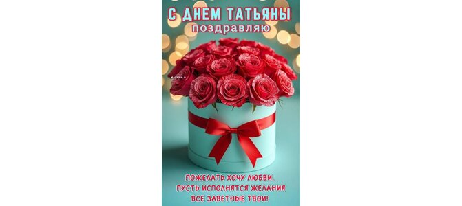 Открытка "С ДНЕМ ТАТЬЯНЫ ПОЗДРАВЛЯЮ ПОЖЕЛАТЬ ХОЧУ ЛЮБВИ. ПУСТЬ ИСПОЛНЯТСЯ ЖЕЛАНИЯ ВСЕ ЗАВЕТНЫЕ ТВОИ."