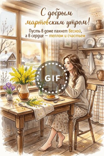 Анимированная открытка "С добрым мартовским утром! Пусть в доме пахнет весной, а в сердце - теплом и счастьем."