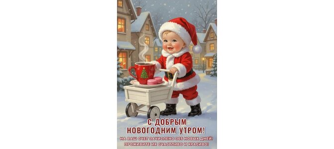Открытка "С ДОБРЫМ НОВОГОДНИМ УТРОМ! НА ВАШ СЧЕТ ЗАЧИСЛЕНО 365 НОВЫХ ДНЕЙ! ПРОЖИВИТЕ ИХ СЧАСТЛИВО И КРАСИВО!"