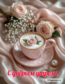 На столике стоит чашечка с кофе и две серëжки красивые, рядом разбросаны розы