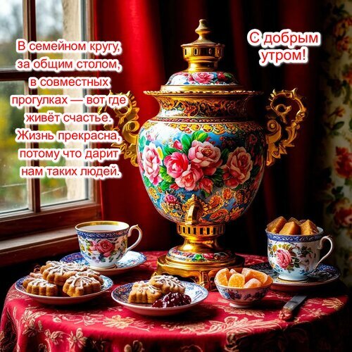 Теги:доброе утро, с добрым утром, доброго утра, открытка, пожелания, жизнь, прекрасна, мотивация, семья, чай, счастье, подарок