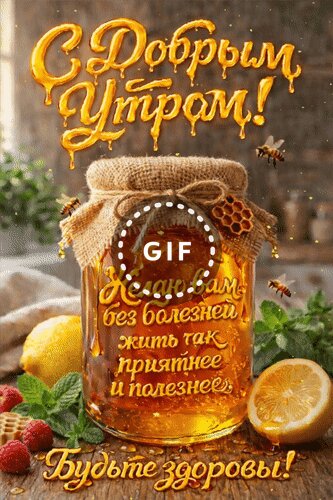 Анимированная открытка "С Добрым утром! Будьте здоровы! Желаю вам без болезней, жить так приятнее и полезнее."