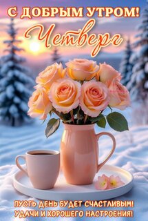 Открытка "С ДОБРЫМ УТРОМ! ЧЕТВЕРГ. ПУСТЬ ДЕНЬ БУДЕТ СЧАСТЛИВЫМ! УДАЧИ И ХОРОШЕГО НАСРОЕНИЯ!"