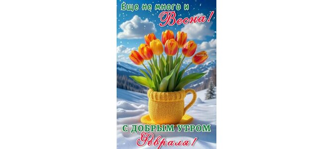 Открытка "С ДОБРЫМ УТРОМ ФЕВРАЛЯ! ЕЩЕ НЕ МНОГО И ВЕСНА!"
