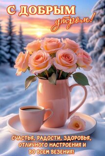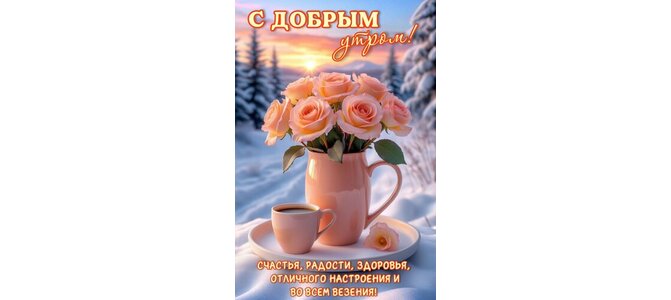 Открытка "С ДОБРЫМ УТРОМ! СЧАСТЬЯ, РАДОСТИ, ЗДОРОВЬЯ, ОТЛИЧНОГО НАСТРОЕНИЯ И ВО ВСЕМ ВЕЗЕНИЯ!"