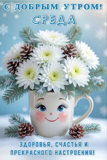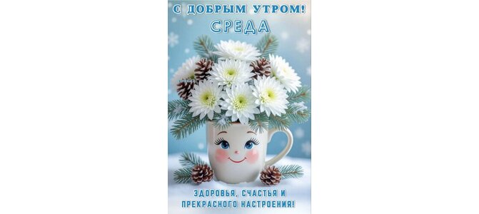 Открытка "С добрым утром! Среда. Здоровья, счастья и прекрасного настроения!"