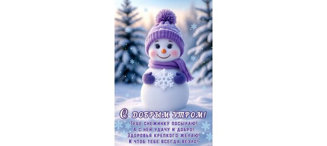 Открытка "С ДОБРЫМ УТРОМ! ТЕБЕ СНЕЖИНКУ ПОСЫЛАЮ! А С НЕЙ УДАЧУ И ДОБРО! ЗДОРОВЬЯ КРЕПКОГО ЖЕЛАЮ! И ЧТОБ ТЕБЕ В"