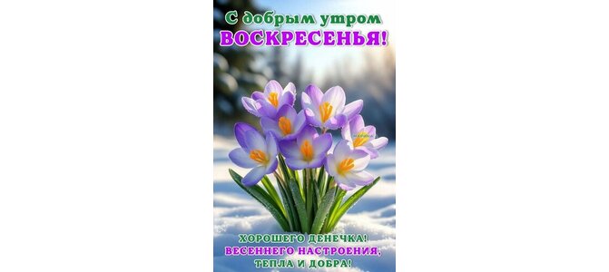 Открытка "С ДОБРЫМ УТРОМ ВОСКРЕСЕНЬЯ! ХОРОШЕГО ДЕНЕЧКА! ВЕСЕННЕГО НАСТРОЕНИЯ, ТЕПЛА И ДОБРА!"