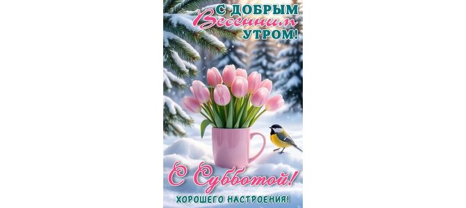 Открытка "С ДОБРЫМ ВЕСЕННИМ УТРОМ! С СУББОТОЙ! ХОРОШЕГО НАСТРОЕНИЯ!"