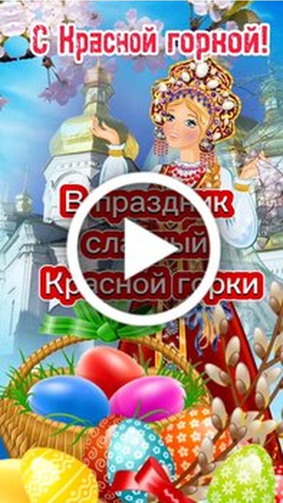 Поздравление с праздником Красной горки. В этом видео вы увидите прекрасные образы в русских народных костюмах на фоне храмов и весенней природы. Видео наполнено символикой праздника: расписными пасхальными яйцами, цветами и яркими красками пришедшей весны. Текст видео несет пожелания удачи, возрождения, успеха и добра всем зрителям. Это светлое и душевное видео поможет передать атмосферу праздника Красной горки и подарить хорошее настроение близким и друзьям.