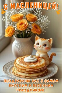 Открытка "С МАСЛЕНИЦЕЙ! ПОЗДРАВЛЯЮ ВАС С САМЫМ ВКУСНЫМ И ВЕСЕННИМ ПРАЗДНИКОМ!"