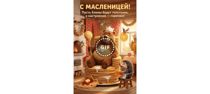 Анимированная открытка "С Масленицей! Пусть блины будут толстыми, а настроение - горячим!"