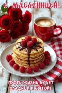 Открытка "С МАСЛЕНИЦЕЙ! ПУСТЬ ЖИЗНЬ БУДЕТ СЛАДКОЙ И СЫТОЙ!"