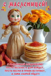 Открытка "С МАСЛЕНИЦЕЙ! С МАСЛЕНИЦЕЙ ПОЗДРАВЛЯЮ! ПУСТЬ ВЕСЕЛЬЕ В ДОМ ВОЙДЕТ, ПУСТЬ ВЕСНА В ПРАВА ВСТУПАЕТ, А З"