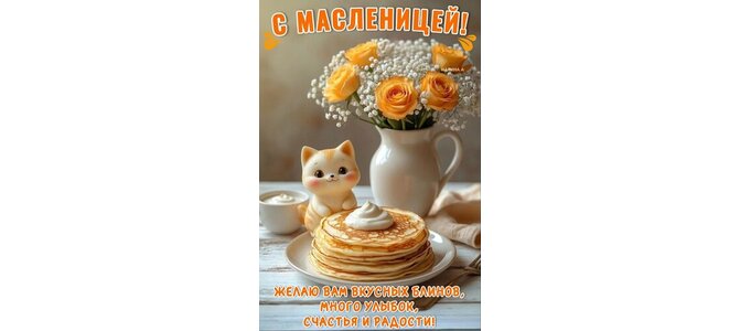 Открытка "С МАСЛЕНИЦЕЙ! ЖЕЛАЮ ВАМ ВКУСНЫХ БЛИНОВ, МНОГО УЛЫБОК, СЧАСТЬЯ И РАДОСТИ!"