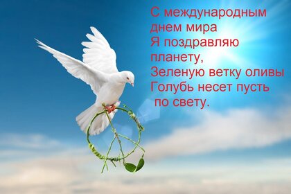 Открытка "С международным днем мира Я поздравляю планету, Зеленую ветку оливы Голубь несет пусть по свету."
