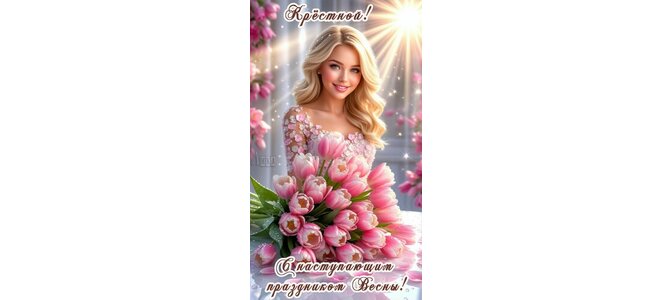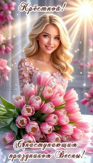 Теги:с наступающим 8 марта крестной, девушка, цветы, тюльпаны, букет цветов, крестной, с наступающим женским днем крестной, весна, красивая картинка