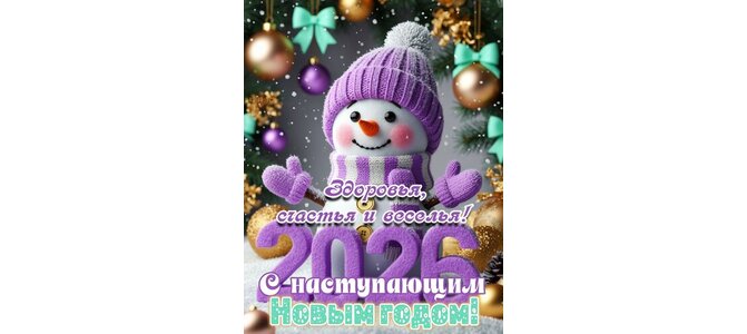 Открытка "С наступающим Новым годом! 2026. Здоровья, счастья и веселья!"