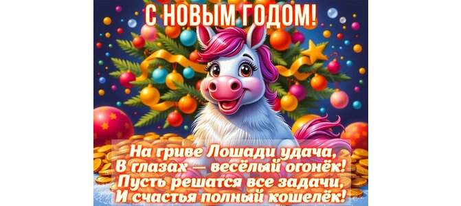 Открытка "С НОВЫМ ГОДОМ! На гриве Лошади удача, в глазах -веселый огонек!...."