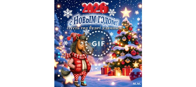 Теги:с новым годом, год лошади, 2026, красивая открытка, анимация, максимчук м г