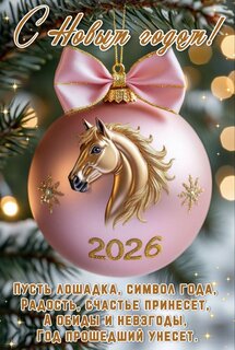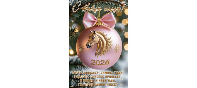 Открытка "С НОВЫМ ГОДОМ! ПУСТЬ ЛОШАДКА, СИМВОЛ ГОДА, РАДОСТЬ,СЧАСТЬЕ ПРИНЕСЕТ, А ОБИДЫ И НЕВЗГОДЫ, ГОД ПРОШЕДШ"