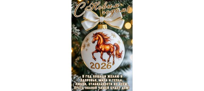 Открытка "С НОВЫМ ГОДОМ! В ГОД ЛОШАДИ ЖЕЛАЮ Я ЗДОРОВЬЯ, МИРА И ТЕПЛА, ЛЮБВИ, СТАБИЛЬНОСТИ ВО ВСЕМ, ПУСТЬ ПОЛН"