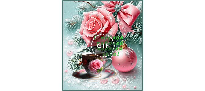 Теги:еловая ветка, розовая роза, розовый бант, розовый елочный шар, чашечка кофе, блюдце, 3d текст