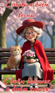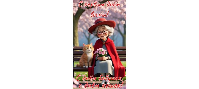 Открытка "С первым днём весны, с днём бабушек, с днём кошек"