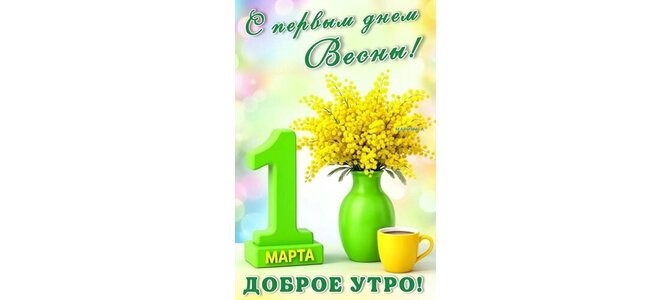Открытка "С ПЕРВЫМ ДНЕМ ВЕСНЫ! ДОБРОЕ УТРО! 1 МАРТА"