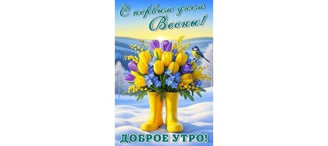Открытка "С ПЕРВЫМ ДНЕМ ВЕСНЫ! ДОБРОЕ УТРО!"