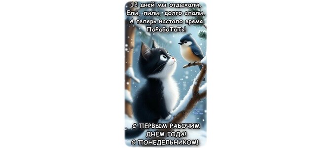 Открытка "С ПЕРВЫМ РАБОЧИМ ДНЕМ ГОДА!, С ПОНЕДЕЛЬНИКОМ!"