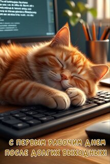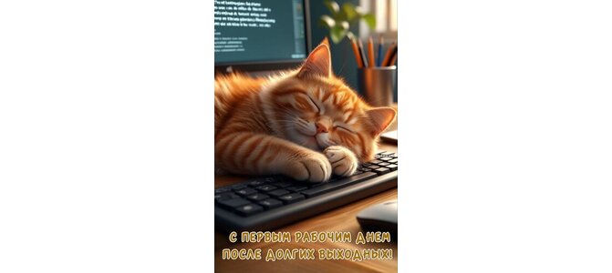 Открытка "С ПЕРВЫМ РАБОЧИМ ДНЕМ ПОСЛЕ ДОЛГИХ ВЫХОДНЫХ!"