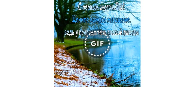Анимированная открытка "С первым снегом вас! Цените каждое мгновение, ведь у природы нет плохой погоды."