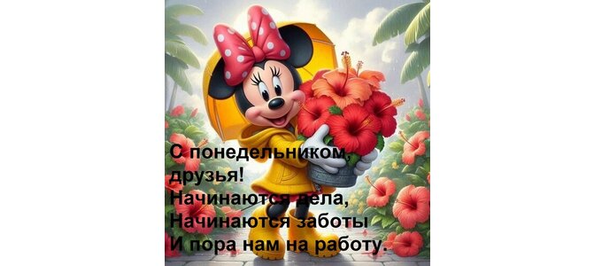 Открытка "С понедельником, друзья! Начинаются дела, Начинаются заботы И пора нам на работу."