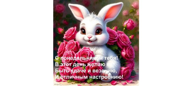 Открытка "С понедельником тебя! В этот день желаю я Быть удаче и везению, И отличным настроению!"