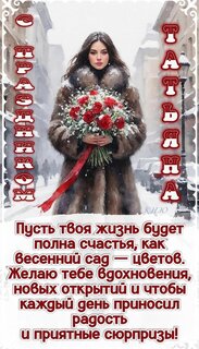 Открытка "С праздником, Татьяна. Пусть твоя жизнь будет полна счастья, как весенний сад - цветов..."
