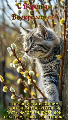 Теги:кот, кошка, верба, с вербным воскресеньем