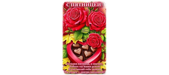 С пятницей! Сегодня пятница, а значит, работе ты маши рукой и составляй себе задачи на отдых — завтра выходной!